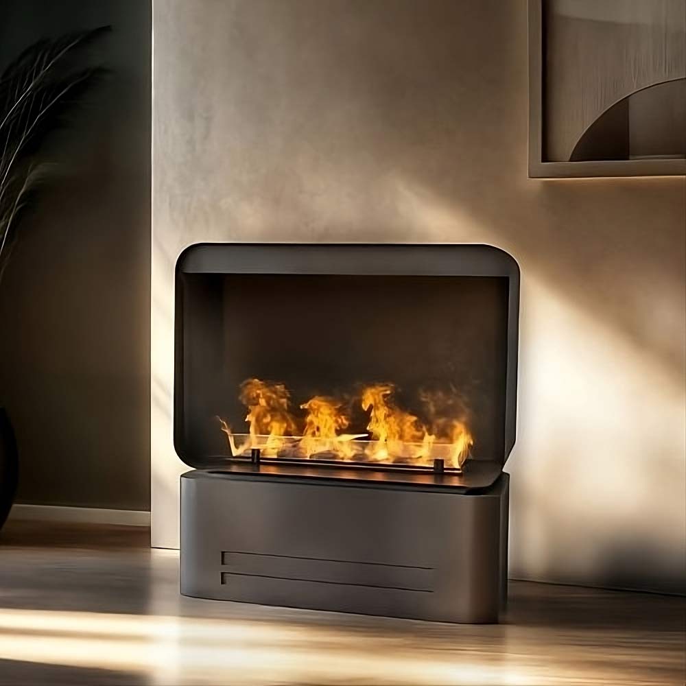 Depuis votre canapé, ajustez facilement l’intensité des flammes (6 niveaux) grâce à une télécommande intuitive. Le réservoir amovible (1,2 L pour la version 500, 2,4 L pour la version 1000) se remplit simplement et garantit une utilisation pratique au quotidien.