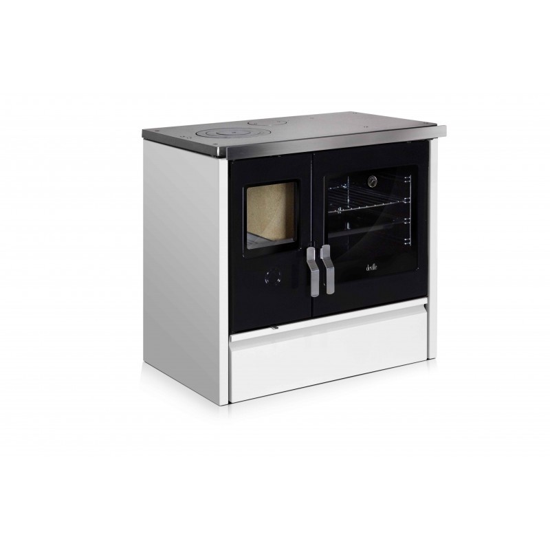 La cuisinière à bois Deville C086AB01 Mélisse 90 Blanc combine chauffage performant et cuisson traditionnelle, offrant une solution polyvalente pour préparer vos repas tout en diffusant une chaleur confortable dans votre intérieur, sublimée par une finition blanche élégante.