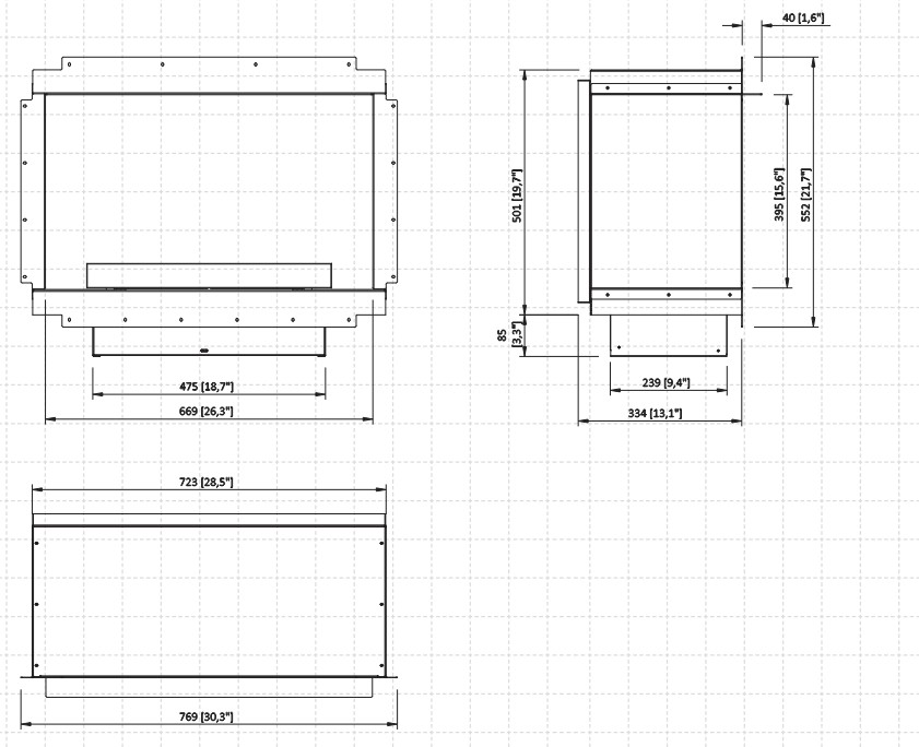 l’insert Neo s’intègre facilement dans un coffrage, un meuble ou une installation sur mesure.
