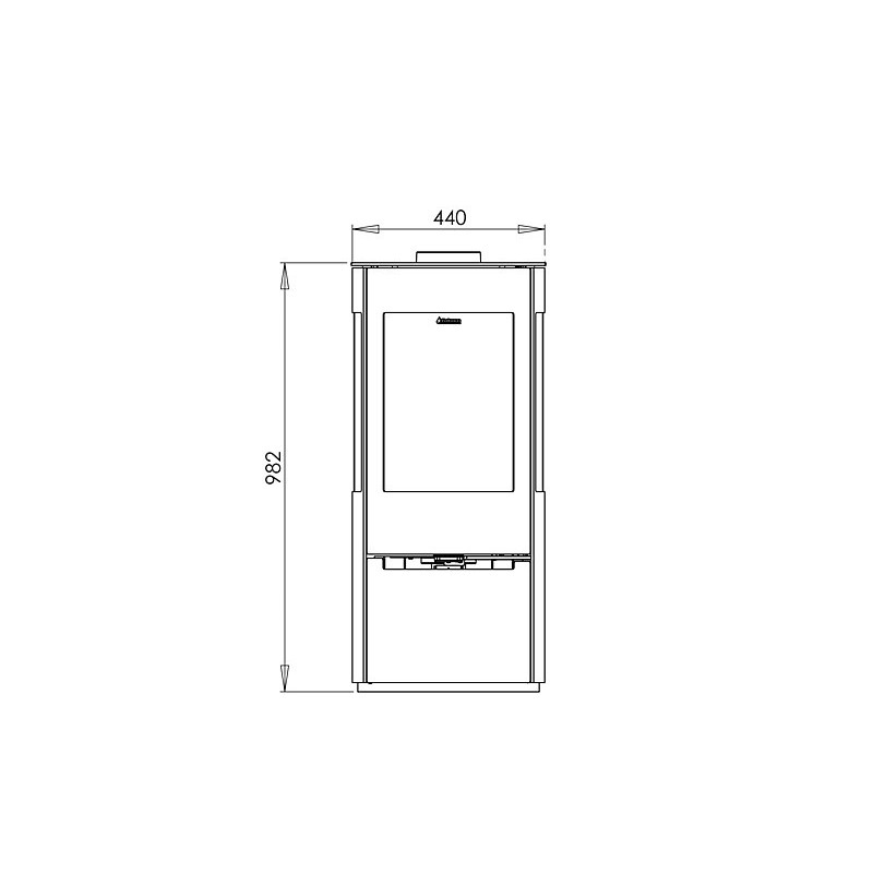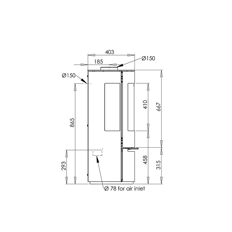 – Distance du centre de sortie du dessus à l’extrémité arrière du poêle : 18,5 cm